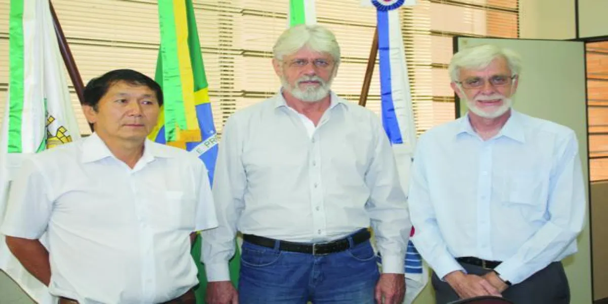 O prefeito de Corbélia, Ivanor Damião Bernardi (PSD) e o engenheiro Paulo Takahashi estiveram ontem com o reitor da Unioeste, Paulo Sérgio Wolff, o Cascá. A finalidade foi conhecer a instituição e propor parcerias.