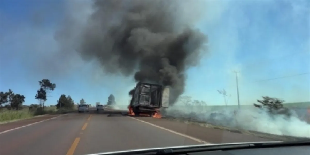 Os bombeiros de Cascavel foram acionados, mas ao chegarem ao local o caminhão já estava tomado pelo fogo.