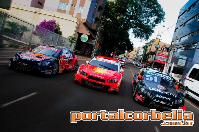 Cascavel (PR) - Aconteceu há pouco a tradicional carreata da Stock Car pelas ruas de Cascavel. Neste domingo, às 11 horas, será disputada no autódromo da cidade do Oeste paranaense a sexta etapa da mais importante categoria do automobilismo nacional. Participaram da promoção, que aproximou os cascavelenses fãs do automobilismo dos Stock Car, os carros da Mobil Super Pioneer, pilotado por Átila Abreu, da Shell Racing e dois da Red Bull Racing.