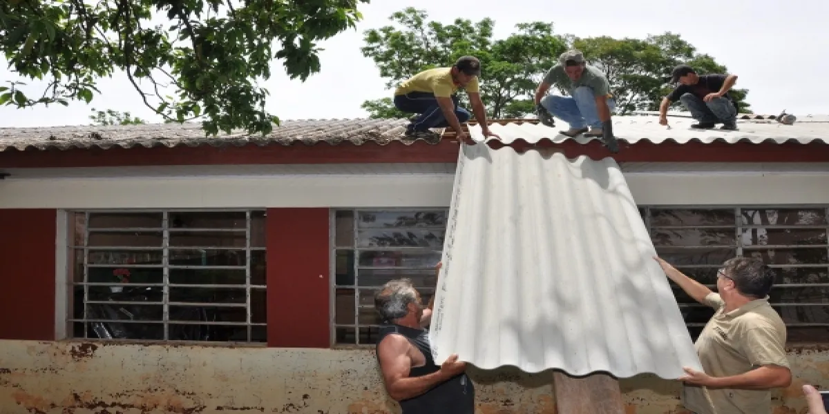 Trabalhadores começaram a trocar a cobertura da escola Castro Alves, em Corbélia. A previsão é de que nos próximos dias todo o telhado tenha sido reconstruído. A escola teve a cobertura destruída por causa de uma forte chuva de pedras registrada há 40 dias. O Município esperava recursos do Governo Federal para que o telhado fosse trocado, mas como houve muita demora, a escola estava se deteriorando.