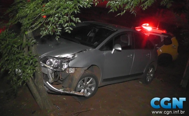 Em fuga, Citroen C4 bate em árvore