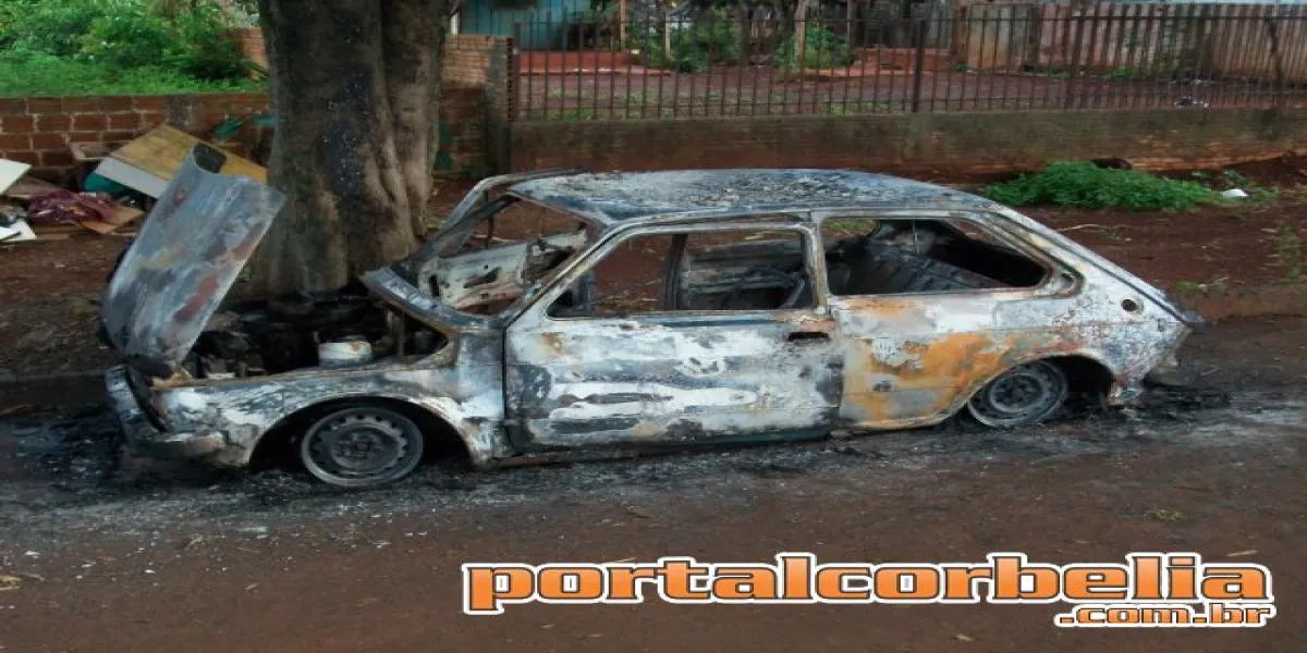 Veiculo é destruido pelo fogo no Bairro Santa Catarina