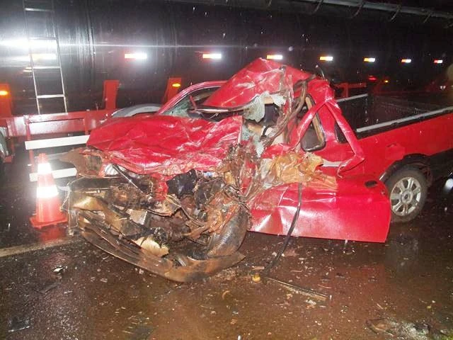 Gravíssimo acidente na BR 369 Km 453 próximo a comunidade Cascalho e Posto Peroza, nesta Segunda 13, por volta das 21h envolvendo uma Caminhonete Ford F1000 cabine dupla Placas AAP-2962 Ubiratã PR,  de cor Prata,  conduzida por Valmir Martins de Ubiratã e o veículo Fiat Strada de cor vermelha Placas AAK 9049 de Anahy -PR conduzido por Ademir Camilo Zampieri  morador também de Ubiratã.