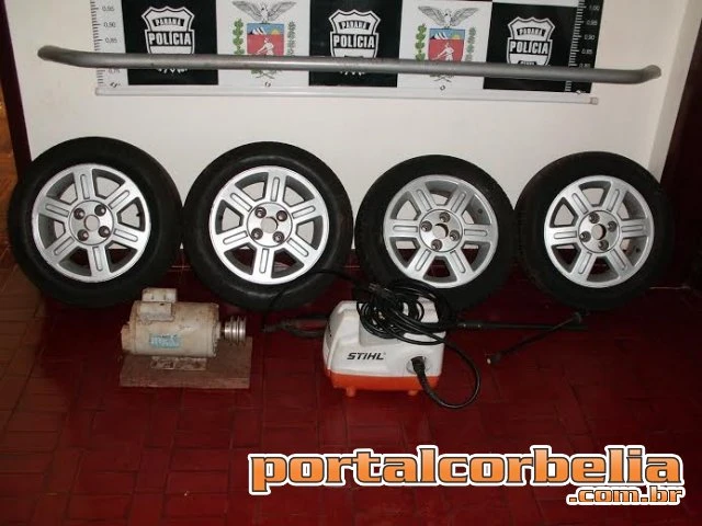 Na ação policial desenvolvida em uma residência na rua Primavera, no Bairro Paraná; foram recuperadas quatro rodas de liga leve com pneus, bem como foram localizados outros produtos de origem não comprovada.