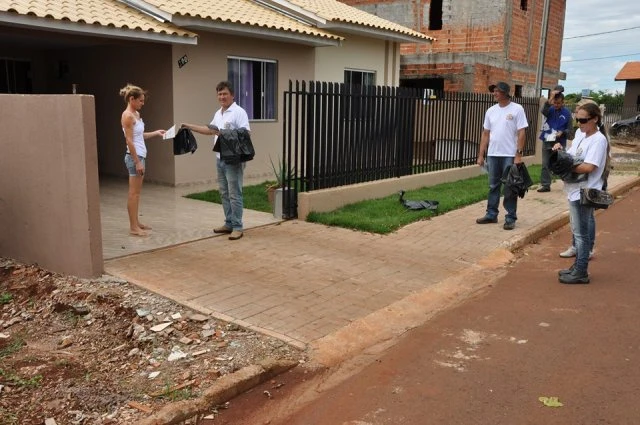 A equipe entregou sacos de lixo aos moradores, para fazer a limpeza do quintal, que deverá ser deixada na frente da casa, e a equipe da limpeza passará recolhendo.