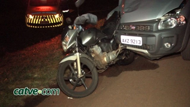 A moto ficou presa à frente do carro, que foi arrastada por cerca de 100 metros de onde aconteceu a batida.