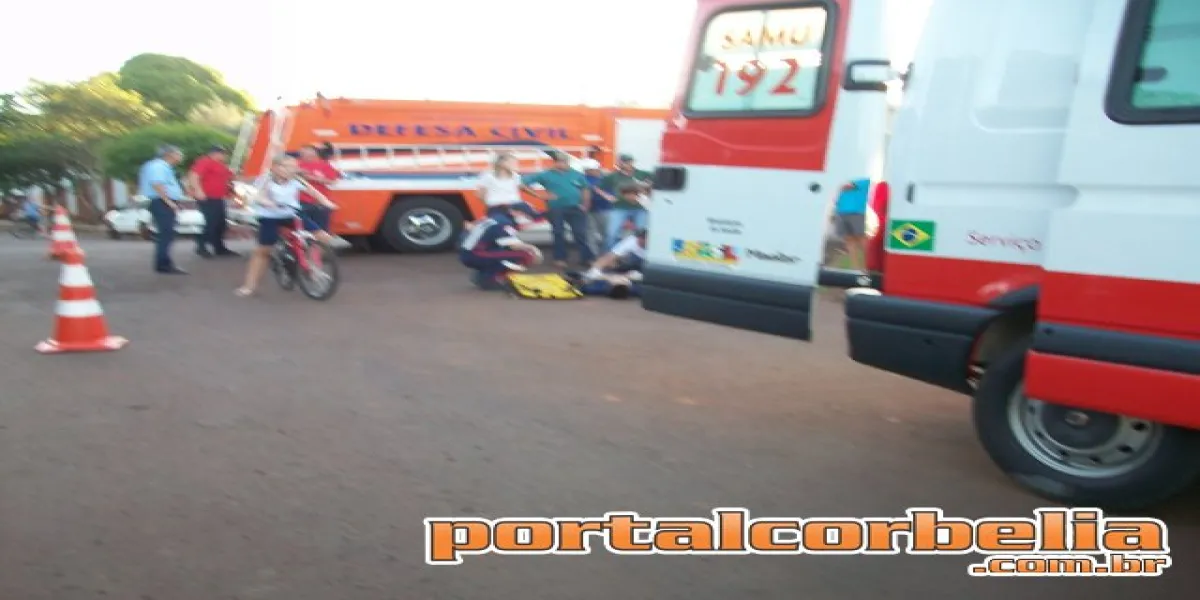 Um adolescente colidiu contra um veículo hoje no final da tarde na rua Rosa esquina com a rua Flor de Liz em Corbélia.