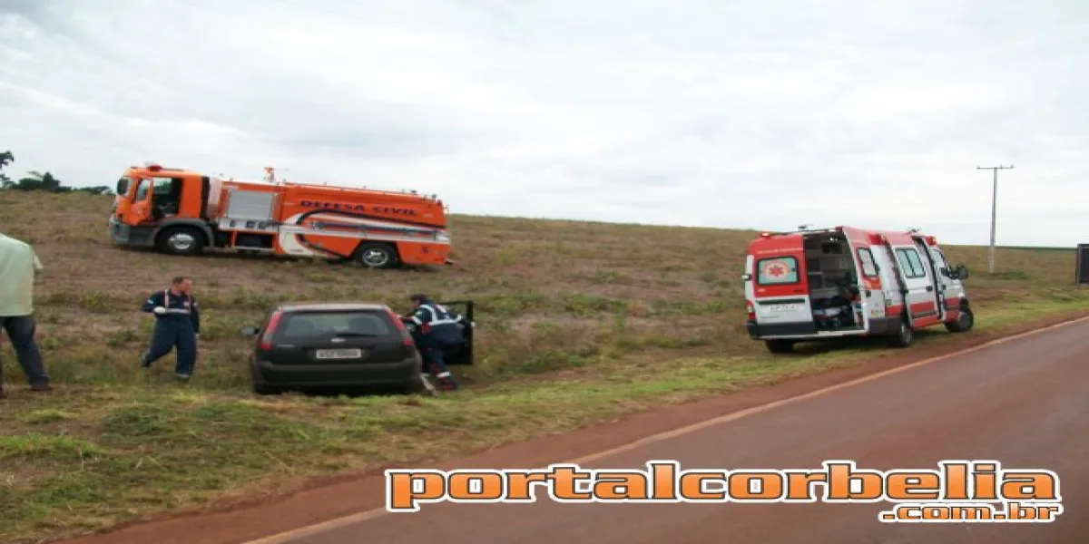 Um acidente foi registrado nesta manhá de terça-feira (13/05) na rodovia 573 que liga Corbélia a Braganey. Um veiculo Ford Fiesta com placas de Braganey bateu em um barranco  e atravessou a rodovia, parando em uma lavoura. Uma equipe do Samu e do Bombeiro de Corbélia atenderam a ocorrencia. A vitima foi levada ao Hospital Santa Simone de Corbélia.