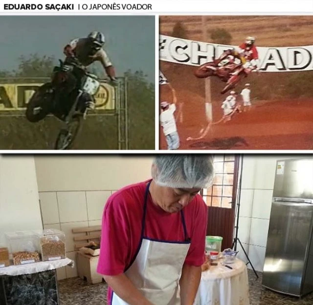 Um dos principais nomes do motocross brasileiro está mudando de carreira e de apelido. Eduardo Saçaki, o "japonês voador", agora é padeiro e já é chamado de "japonês do sonho" na cidade de Corbélia, no oeste do Paraná, onde mora atualmente. As transformações na vida do ex-campeão começaram após acidentes quase fatais que deixaram cicatrizes e sustos. Nascido em 11 de maio de 1969, em Curitiba, Eduardo ainda era bebê quando dava sinais do que queria da vida: