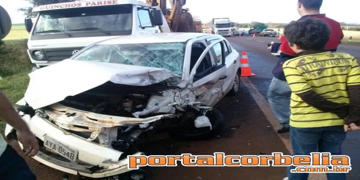 A batida envolveu um Sandero, placas de Umuarama, um Gol, placas de Cascavel e dois caminhões. Duas versões foram relatadas no local. A primeira seria de que o motorista do Sandero seguia sentido Corbélia quando teria dormido ou sofrido um mal súbito, invadindo a pista contrária batendo de frente com o Gol.