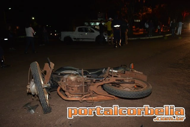 Uma colisão entre uma Motocicleta e uma Saveiro foi registrada hoje por volta das 20h30 na Avenida Rio Grande do Sul esquina com a Rua Açucena em Corbélia.