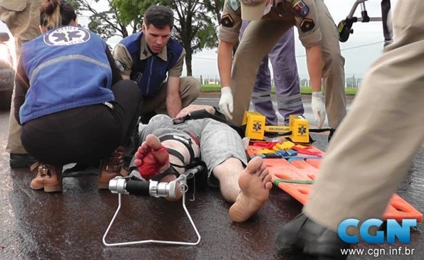 Socorristas e médico do Siate estiveram no local do acidente e prestaram os primeiros atendimentos à vítima. Alexsandro sofreu uma fratura fechada no fêmur direito. Ele foi encaminhado para o HUOP (Hospital Universitário do Oeste do Paraná).