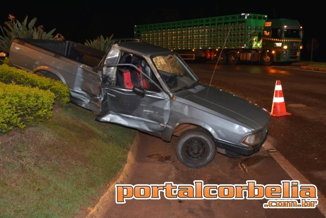 Um acidente entre uma carreta e uma Pickup Pampa foi registrado hoje por volta das 21h30 no trevo de acesso principal de Corbélia.