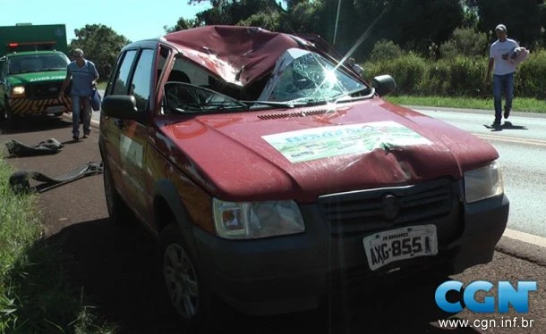 O Uno do município de Braganey seguia sentido Cascavel quando foi atingido