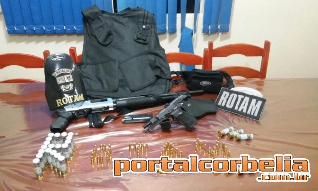 A ROTAM de Corbélia apreendeu na madrugada de hoje (24) duas armas de grosso calibre, munições e um colete balístico em uma parada de ônibus na cidade de Corbélia.