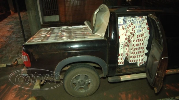 Instantes depois, uma caminhonete S-10, de Osasco/SP, apenas com o condutor, passou no local. A caminhonete estava carregada com cerca de 40 caixas de cigarros contrabandeados do Paraguai.
