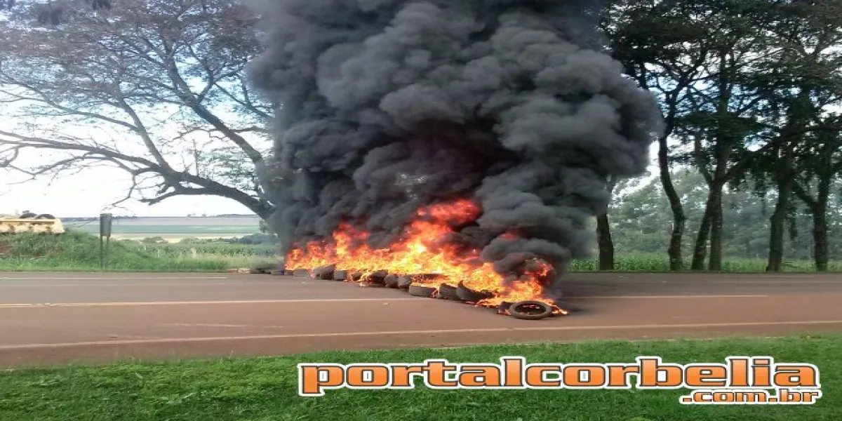 Manifestantes bloquearam a BR369 no trevo de acesso principal de Corbélia hoje por volta das 14h00. Pneus foram colocados na pista e incendiados.