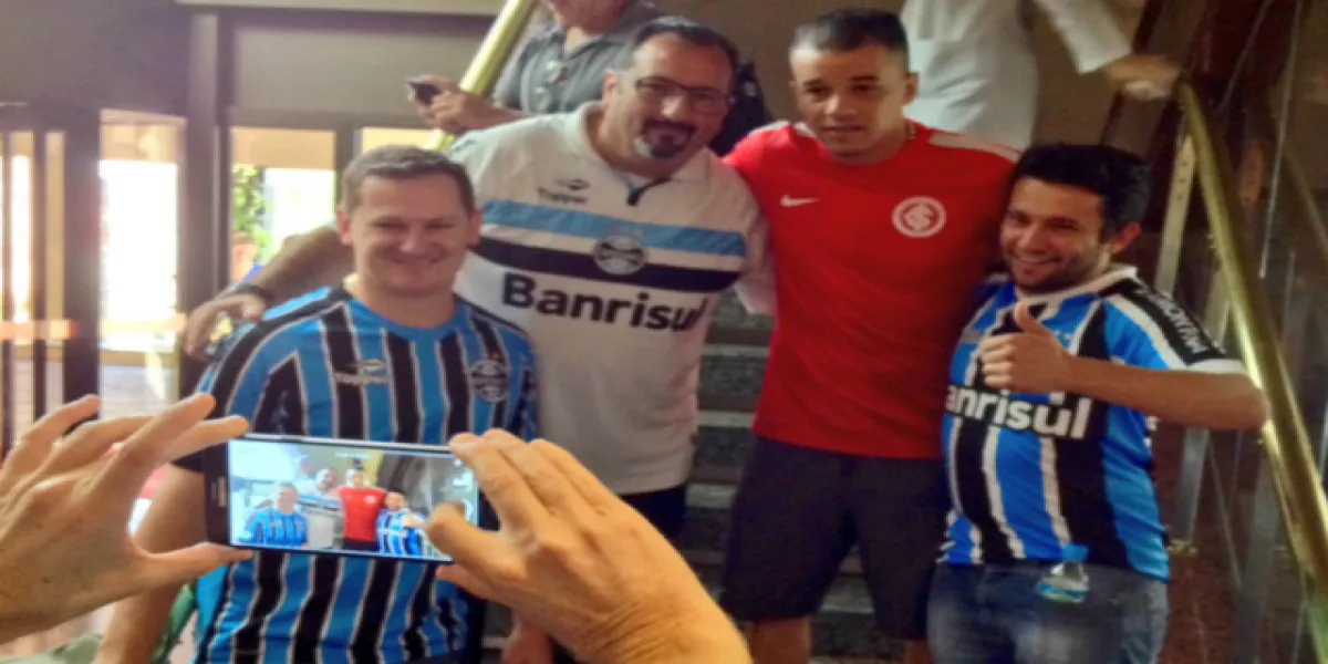 Hospedados no Hotel Millenium, onde a delegação do Inter está concentrada, um grupo de gremistas não se furtou em parar o meia D'Alessandro para uma fotografia.