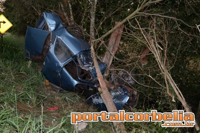 Um veículo Chevette que seguia sentido a Braganey perdeu o controle e colidiu contra algumas árvores depois de bater na Proteção da ponte.