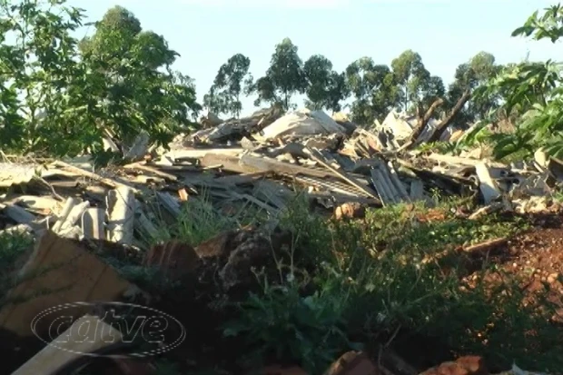 Quase dois anos depois e os entulhos continuam no mesmo lugar. As telhas que estão no terreno são resultado de um vendaval que destruiu boa parte das casas em Corbélia em 2013, e até agora não foram retirados.