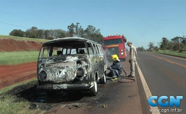 Prudente, o homem parou, e ao olhar no motor da Kombi, na parte de trás do utilitário, já percebeu a fumaça e o início das chamas.