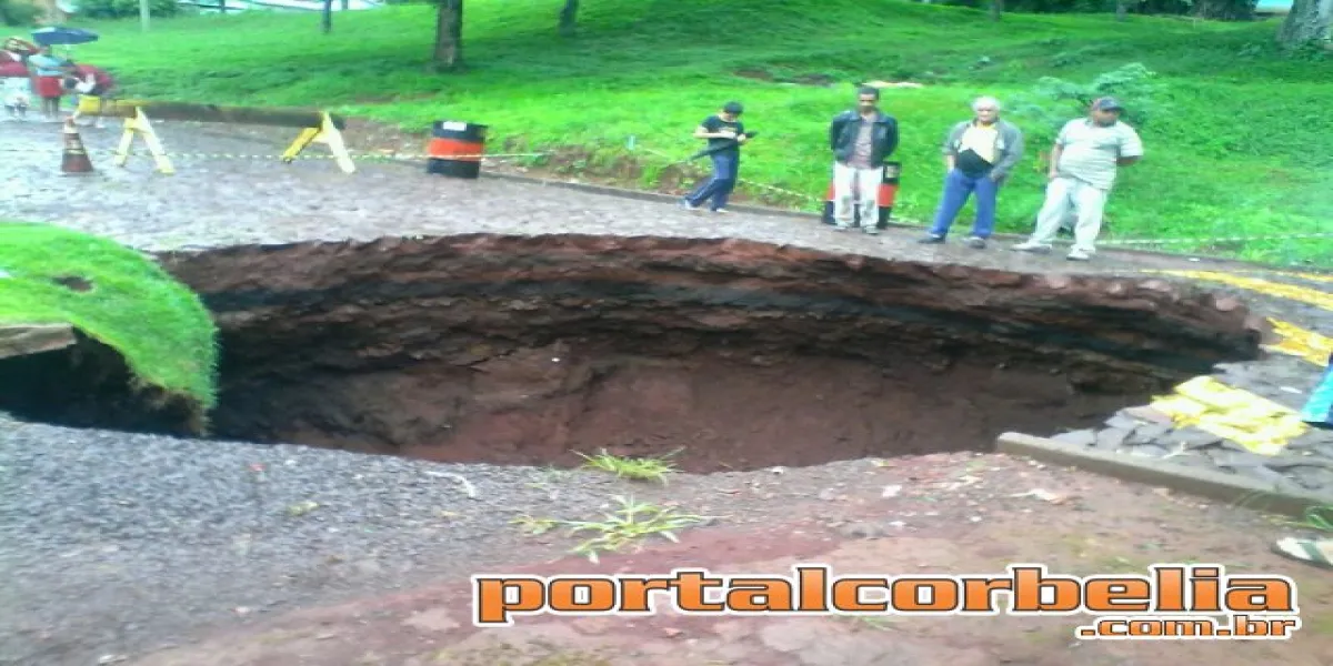 As consequencias da chuva na tarde desta quarta-feira foram assustadoras, Um buraco se formou na rua próxima ao lago municipal e em menos de uma hora se transformou em um cratera de aproximadamente 5 metros de profundidade.