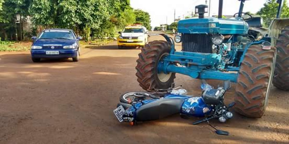 Um trator e uma moto colidiram na tarde de ontem na rua Flor de Liz no Bairro Santa Catarina em Corbélia.