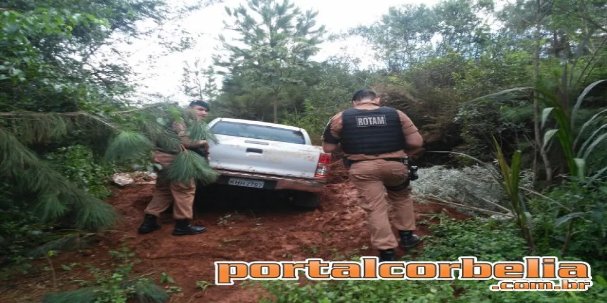 Policiais da Patrulha Rural de Corbélia encontraram no início da noite de hoje entre as comunidades de Barra Bonita e Colônia Melissa uma caminhonete Toyota Hilux que havia sido roubada na área rural em Cascavel no último dia 24 de janeiro.