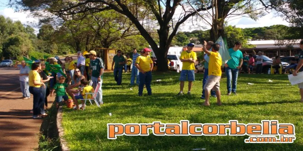 Aproximadamente 100 pessoas protestaram na tarde de hoje (13) na BR369 no trevo de acesso principal a Corbélia pedindo impeachment da presidente Dilma Roussef, redução das tarifas de pedágio e instalação de uma lombada eletrônica na BR369 nos trevos de acesso à cidade.