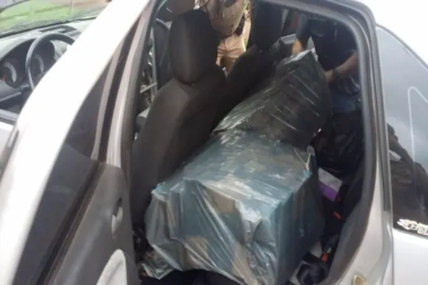 No carro os militares encontraram duas caixas de cigarros contrabandeados.