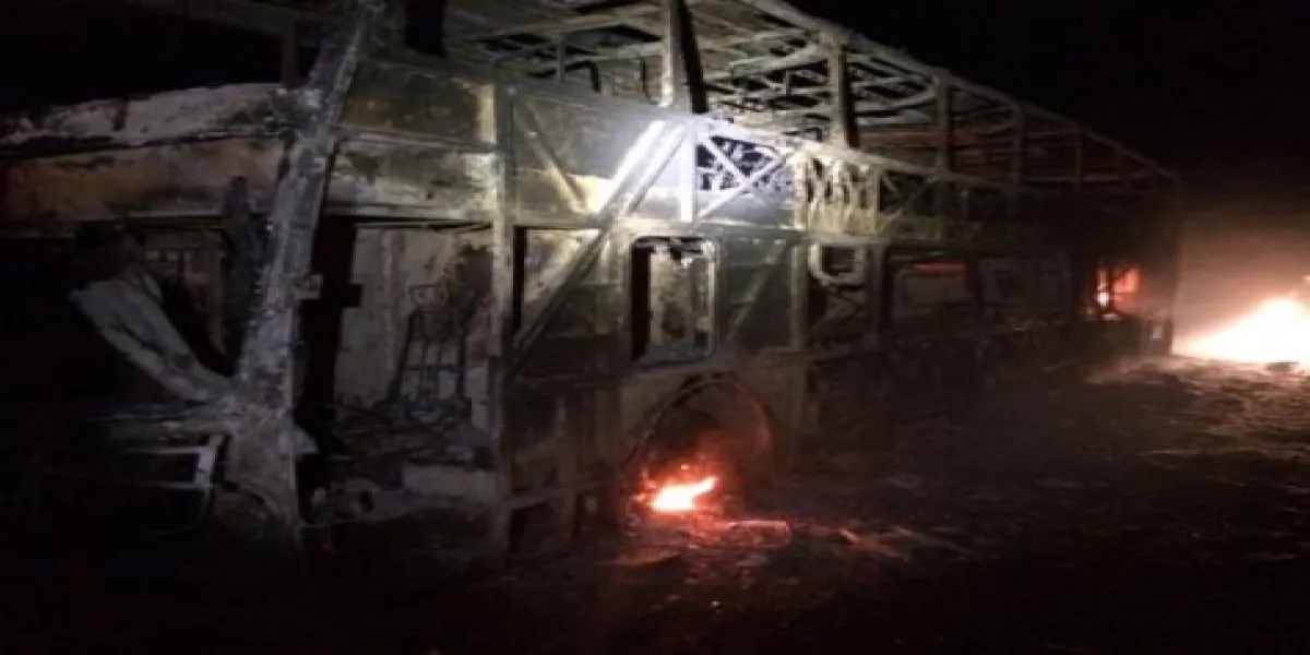 Um ônibus foi detruído por um incêndio na madrugada deste sábado (17), nas proximidades de Juranda, região de Ubiratã.