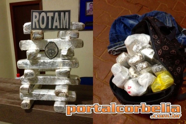 Uma equipe da ROTAM realizou abordagem no início da madrugada de hoje (14) a um ônibus que fazia linha Foz do Iguaçu a Londrina quando em revista a passageiros foi localizado com o passageiro Maycon Leandro Tomiak uma mochila em seus pés com aproximadamente 8,700kg de substância análoga à maconha.