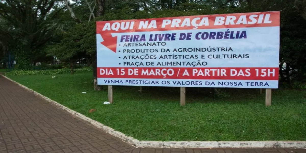A Secretaria de Desenvolvimento Econômico Agricultura e Turismo do Município estará realizando no próximo dia 15/03 quarta-feira a partir das 15h00 uma Feira Livre na Praça Brasil em Corbélia.