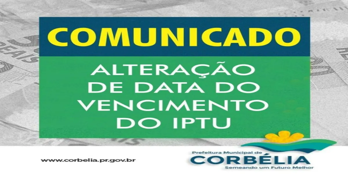A Prefeitura Municipal de Corbélia informou a prorrogação da data de vencimento para o IPTU devido a um ajuste necessário na geração do código de barras dos boletos.