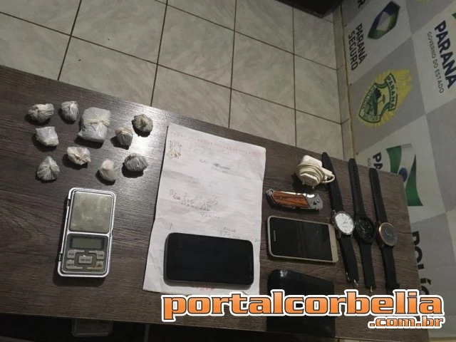 No local foram encontrados 54.3 gramas de maconha, uma balança de precisão e outros objetos de origem duvidosa, e juntamente com os produtos havia um papel com anotações com valores possivelmente de comercialização do ilícito.