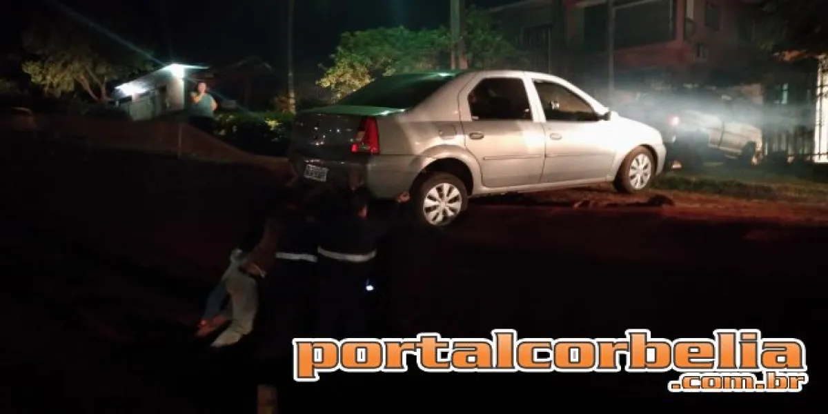 Agentes da Defesa Civil foram acionados para auxiliar na retirada do veículo do local. Ninguém se feriu.
