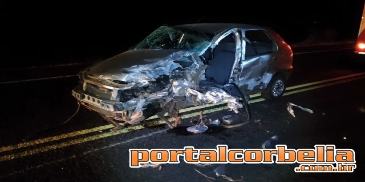 Um Palio com placas de Corbélia bateu de frente com um caminhão que seguia no sentido contrário. Um dos ocupantes do caminhão ficou preso às ferragens e entrou em óbito no local, já o condutor foi encaminhado para a UPA Veneza em Cascavel.