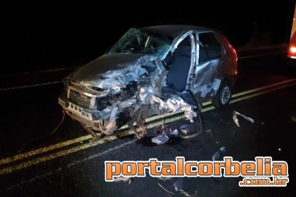 Um Palio com placas de Corbélia bateu de frente com um caminhão que seguia no sentido contrário. Um dos ocupantes do caminhão ficou preso às ferragens e entrou em óbito no local, já o condutor foi encaminhado para a UPA Veneza em Cascavel.