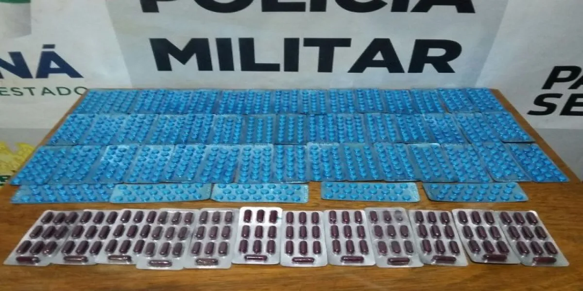 Em buscas no interior do coletivo, foi localizado com uma mulher de 64 anos, cartelas de remédios proibidos no Brasil.