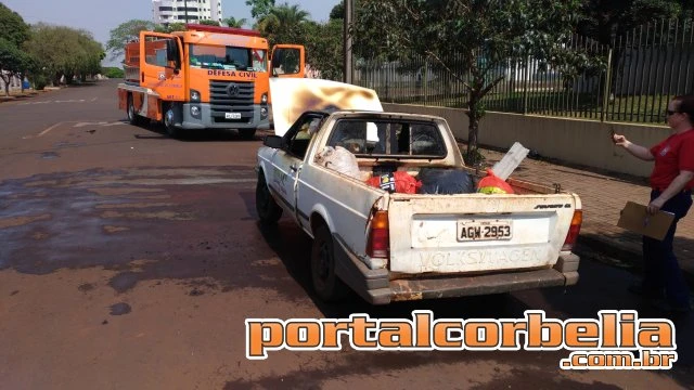 Agentes da Defesa Civil foram acionados nesta manhã para combater um incêndio a um veículo Saveiro na rua Acácia .