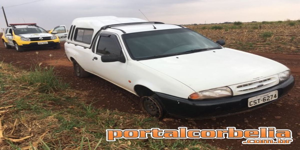 Na data de hoje, por volta das 8hs o plantão da Policia Militar recebeu uma ligação informando a respeito de um veículo abandonado proximo a Campininha. A equipe RPA deslocou até o local e identificou o veículo como sendo um Ford Courier, de cor branca, sendo o veículo furtado no sabado na cidade de Braganey. A equipe removeu o veículo com uso de guincho até a 49 DRP de Corbélia, sendo entregue ao Delegado de Plantão para procedimentos cabíveis a Policia Judiciária.
