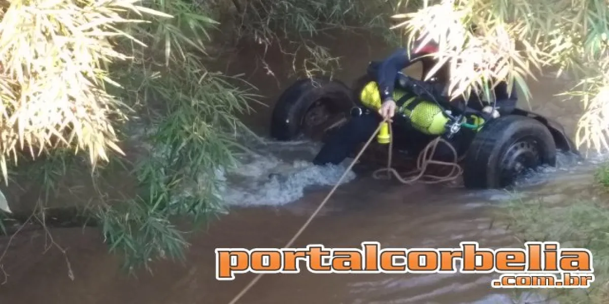 Um veículo  Fiat Palio com placas de Cafelândia foi encontrado submerso no Rio Melissa na divisa entre Corbélia e Cafelândia na linha Samambaial.