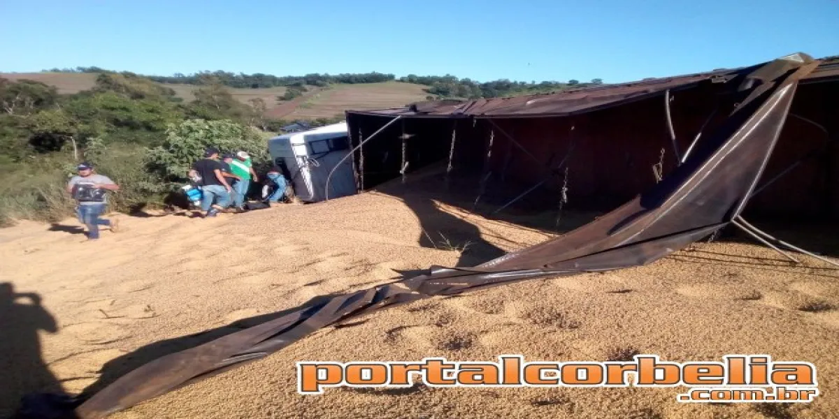 Uma carreta perdeu o controle e tombou no início desta manhã na PR573 em uma curva próximo ao rio das antas entre Corbélia e Braganey.