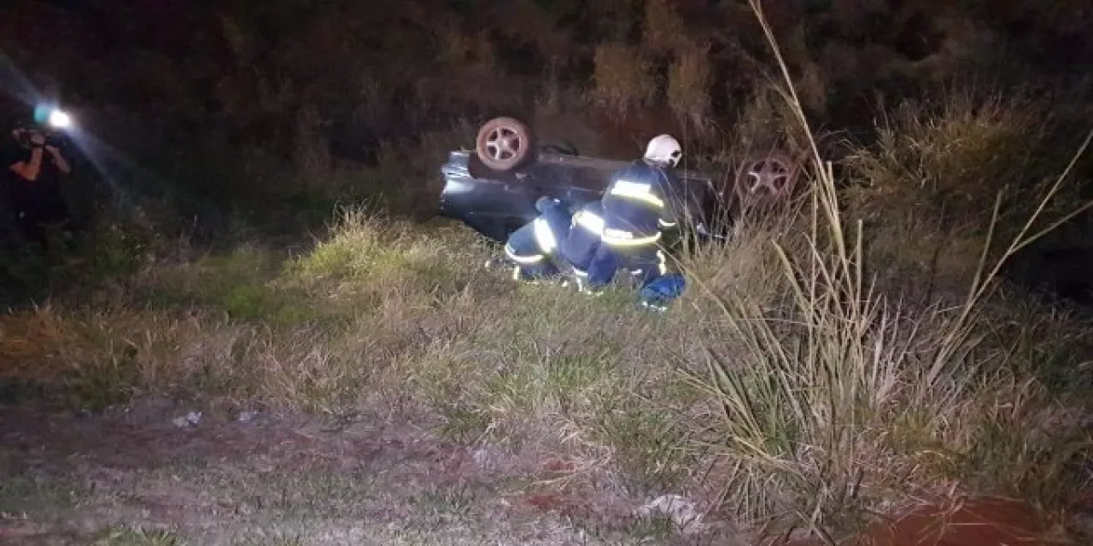 No carro havia o condutor e o passageiro, Igor Juliano de Maggio da Silva, de 25 anos, ficou preso as ferragens e precisou do apoio dos bombeiros para sair do carro capotado.
