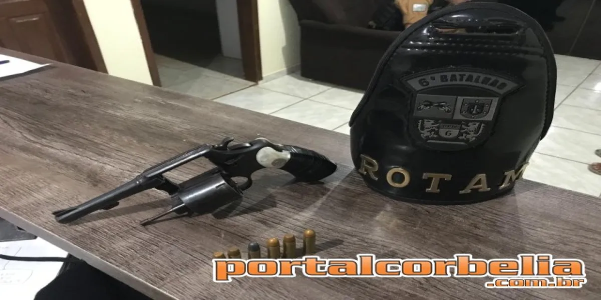 Uma equipe da Rotam prendeu no início desta noite em Corbélia um homem portando um revólver calibre 38 com 6 munições intactas.