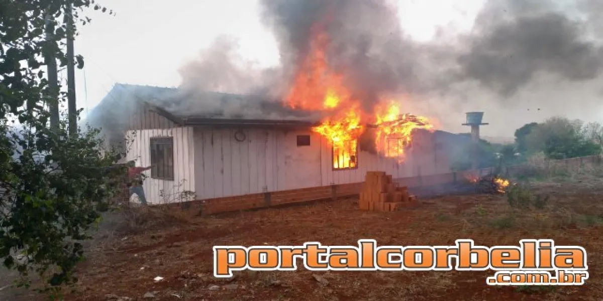 Um incêndio de grandes proporções foi registrado no final da tarde desta segunda feira por volta das 16h40 em uma residência na rua Flor de Lis entre as ruas Aurora e Quaresmeira em Corbélia.