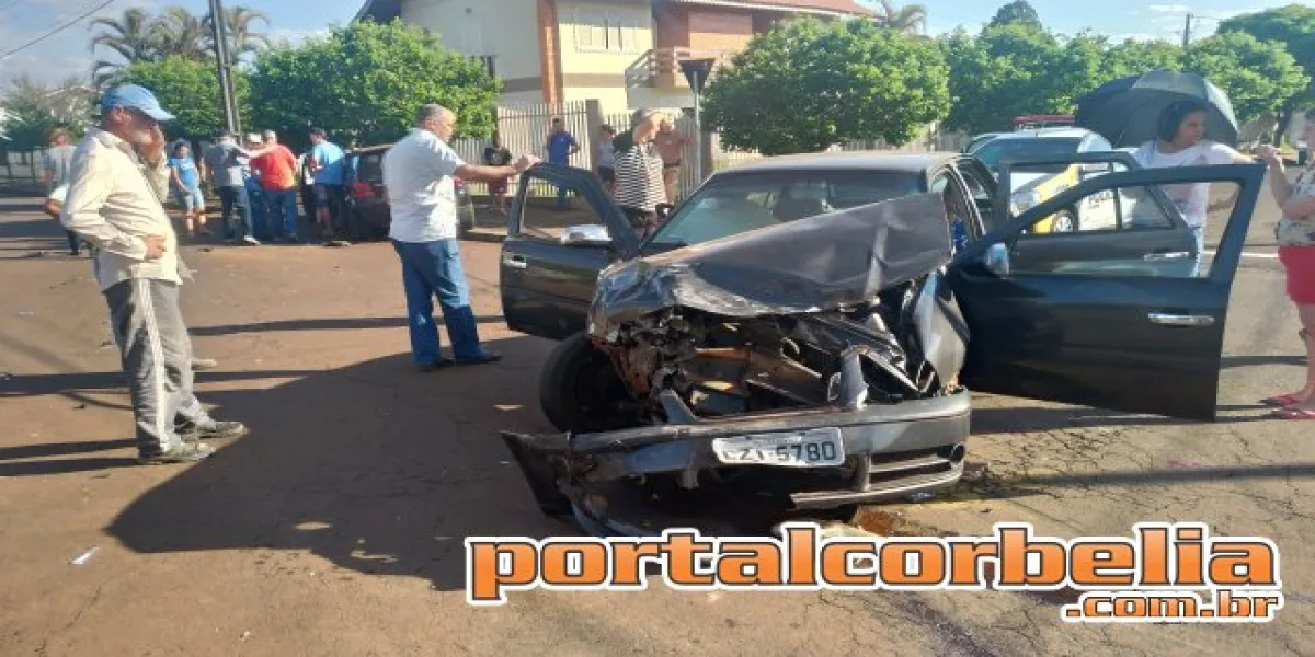 Colisão entre dois veículos no centro de Corbélia deixa feridos