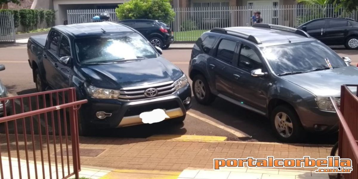 Veículos são notificados por estacionarem em local proibido, na rampa de acesso para cadeirantes.