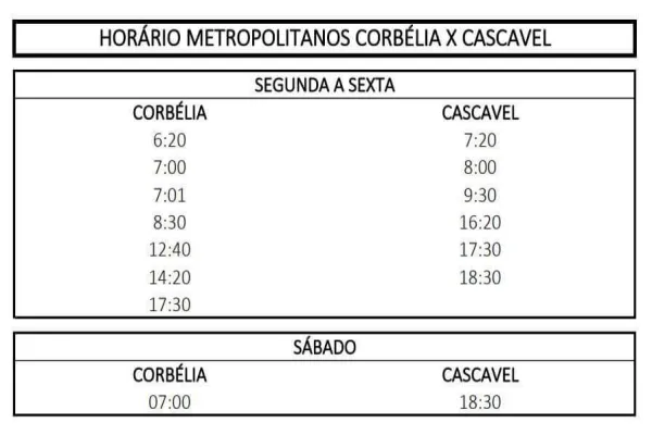 AOS USUÁRIOS DO TRANSPORTE COLETIVO CORBÉLIA x CASCAVEL DA EXPRESSO MARINGÁ