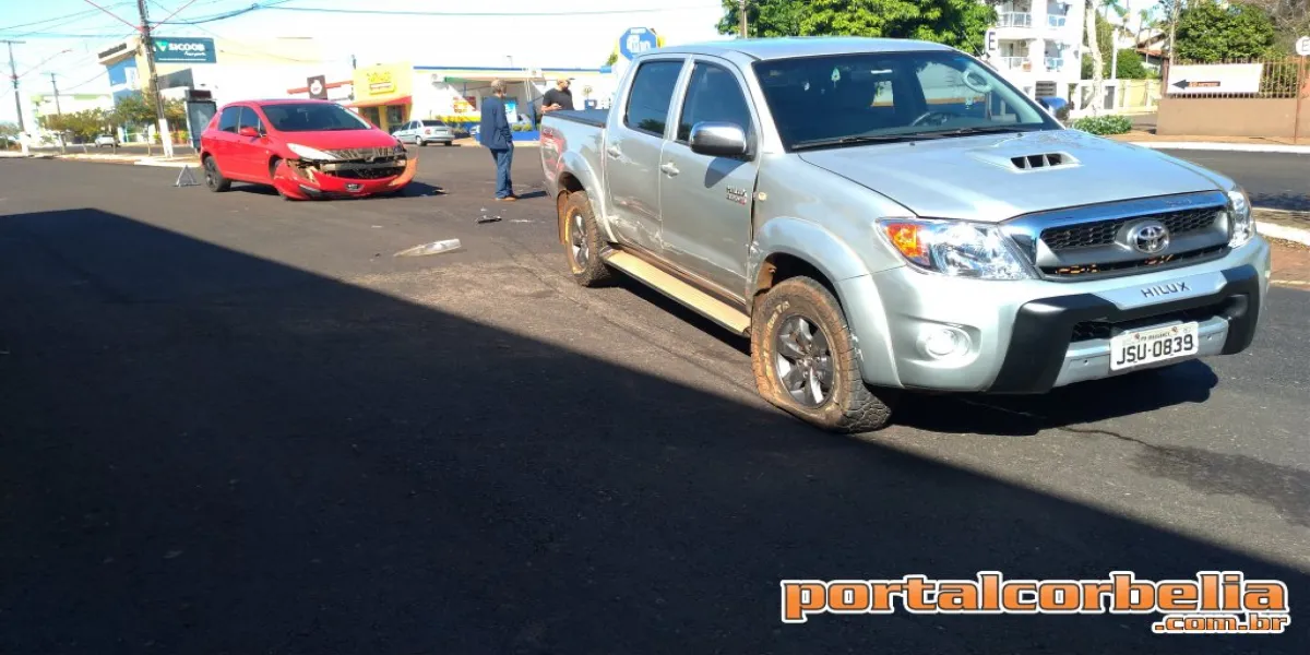 Uma colisão envolvendo uma Hilux com placas de Braganey e um Peugeot de Corbélia foi registrada na avenida Santa Catarina na esquina com rua Rosa.